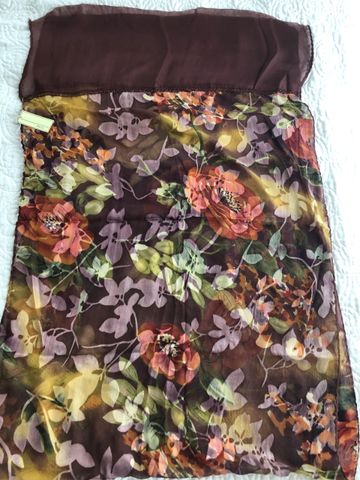64" x 21" floral silk scarf from China and donated by Rebecca Kessler