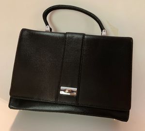 11" x 8" upright handbag with optional over the shoulder strap by designer Carla Westcott and donated by Rebecca Kessler